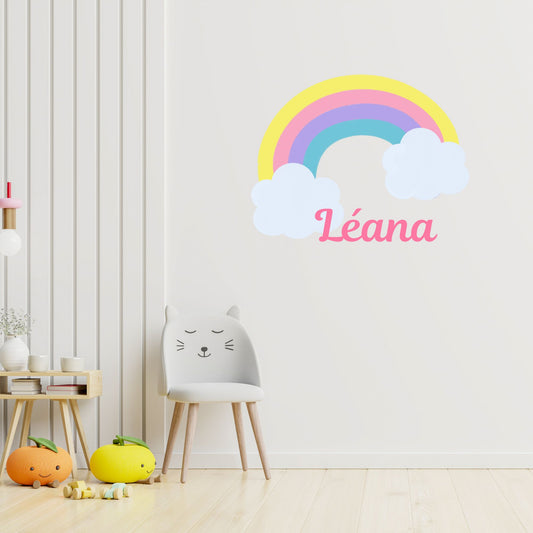 Sticker arc en ciel rainbow et prénom personnalisé