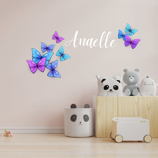 Stickers papillons 3d violet bleu et prénom